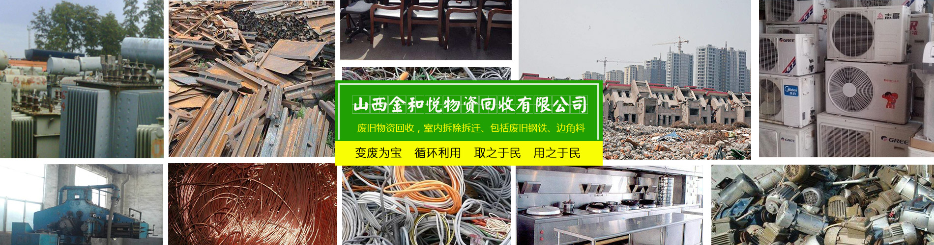 山西金和悅物資回收有限公司是一家從事廢舊物資回收,整廠設(shè)備打包回收的公司。主要可回收社會各行各業(yè)的廢舊物資,包括廢鋼廢鐵/廢銅廢鋁/稀有金屬/廢不銹鋼/廢舊機(jī)械設(shè)備/電線電纜/電池電瓶回收以及廢舊廠房整體設(shè)備打包回收。免費(fèi)上門估價,現(xiàn)場付款,可帶工人上門,清理庫房。我公司立足于環(huán)保,利用閑置的資源,變廢為寶,循環(huán)利用,取之于民,用之于民,讓有效的資源得到合理的利用,充分體現(xiàn)它的價值。公司堅(jiān)持“以質(zhì)量求生存,以信譽(yù)求發(fā)展”的基本原則,為山西及周邊地區(qū)的企業(yè)、單位和個人提供安全、快捷的服務(wù)。歡迎各界有廢料或需要拆除的人士來電洽談業(yè)務(wù)!
